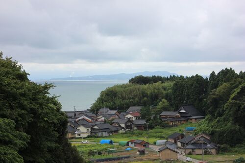 1枚目 結局 七尾南湾越しに石動山の見える海辺でいただいた。 2枚目 目線を左に移すと寺島・カラス島 3枚目 観音堂石塔群